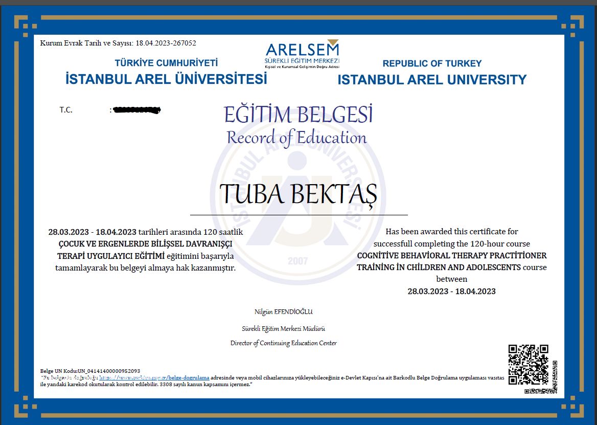 · Çocuk ve Ergenlerde Bilişsel Davranışçı Terapi Uygulayıcılığı